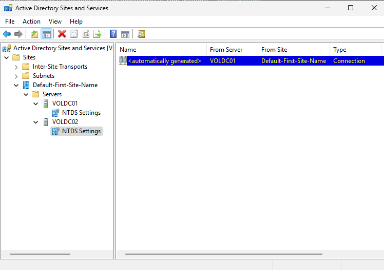 AD Site and Services’dan yeni kurulan Windows Server 2025 DC’nin objesinin geldiği ve replication partner’ının oluştuğu kontrol edilir.