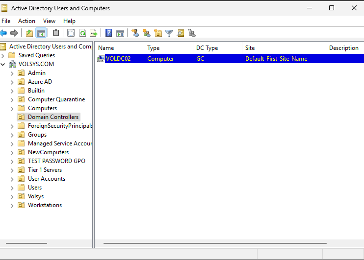 ADUC’da gerekli kontroller yapılır. Ve AD objesinin Domain Controllers OU’sundan gittiği görülür.