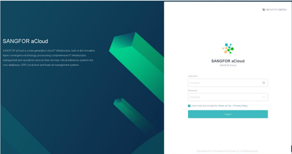 Bir tarayıcı açın ve adres çubuğuna https://10.250.0.7 yazın ve aşağıdaki gibi Sangfor HCI GUI’ye giriş yapın: