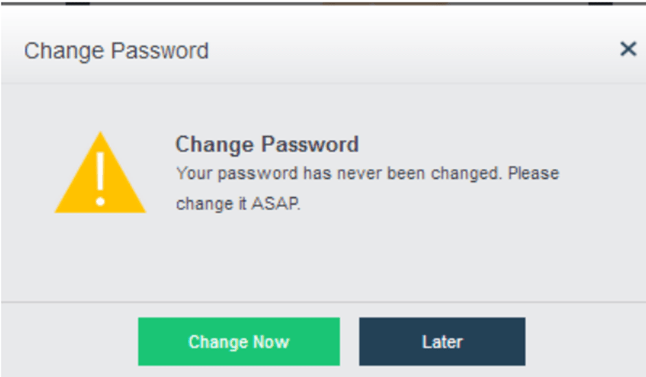 Başarılı bir giriş yaptıktan sonra, yöneticinin şifreyi değiştirmesini isteyen aşağıdaki diyalog kutusu açılacaktır