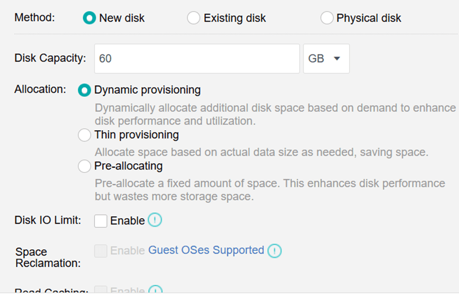 Yeni Disk (New Disk): Yeni bir disk oluşturmayı veya mevcut bir diski kullanmayı seçebilirsiniz. Yeni bir disk oluşturmak istiyorsanız, aşağıdaki sayfada ilgili alanları yapılandırın: