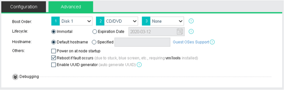 - Hata Durumunda Yeniden Başlat (Reboot if fault occurs): Bu seçenek seçildiğinde, takılma veya mavi ekran gibi bir hata durumunda sanal makine otomatik olarak yeniden başlatılır. Bu seçeneğin etkili olabilmesi için vmTools kurulmuş olmalıdır.
