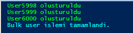 VOLDC01 kapalı iken Active Directory’de değişiklik yapmak için 1000 adet user oluşturuldu.