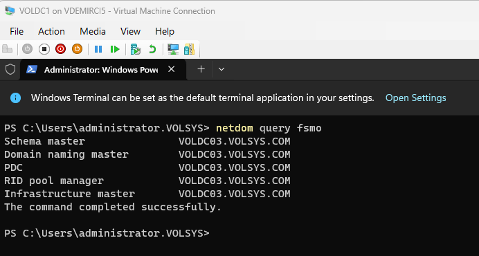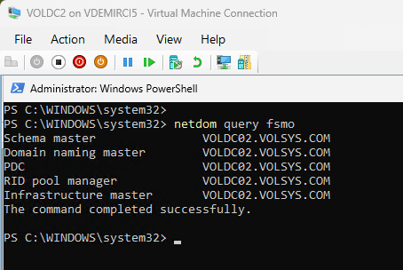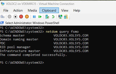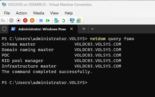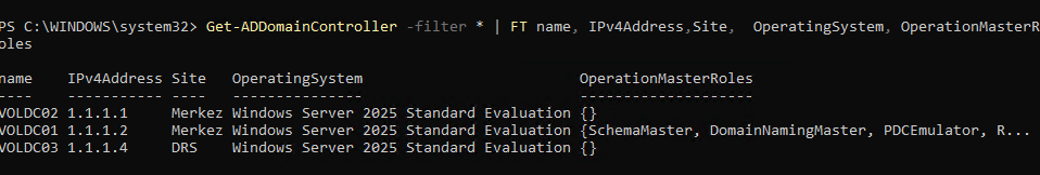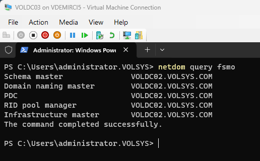 VOLDC01 açıldığında netdom query fsmo ile VOLDC02’yi görmen tam olarak bu özelliklerden dolayıdır.