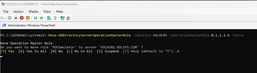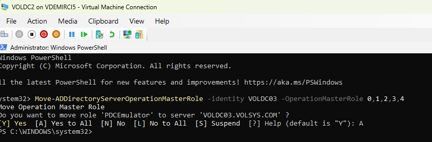 Disaster recovery site da bulunan VOLDC03’e FSMO rolleri transfer yapıyorum.