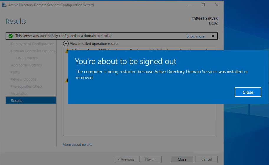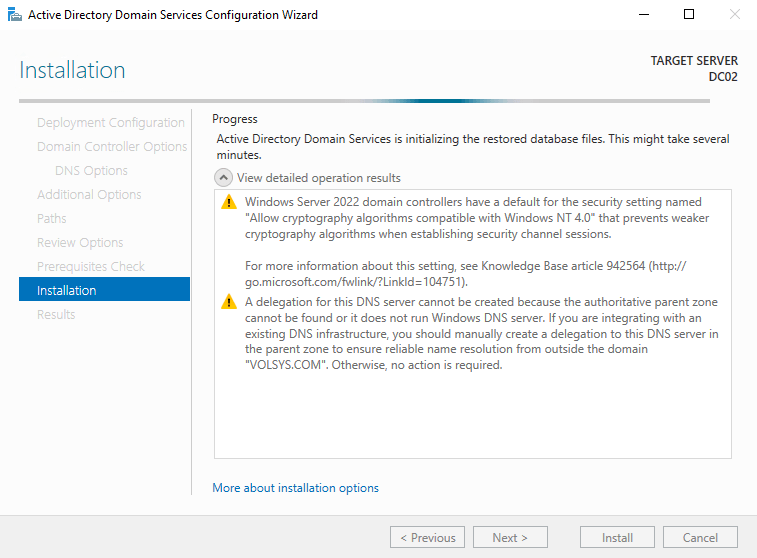 Büyük AD veritabanı varsa ilk replikasyon saatler sürebilir.