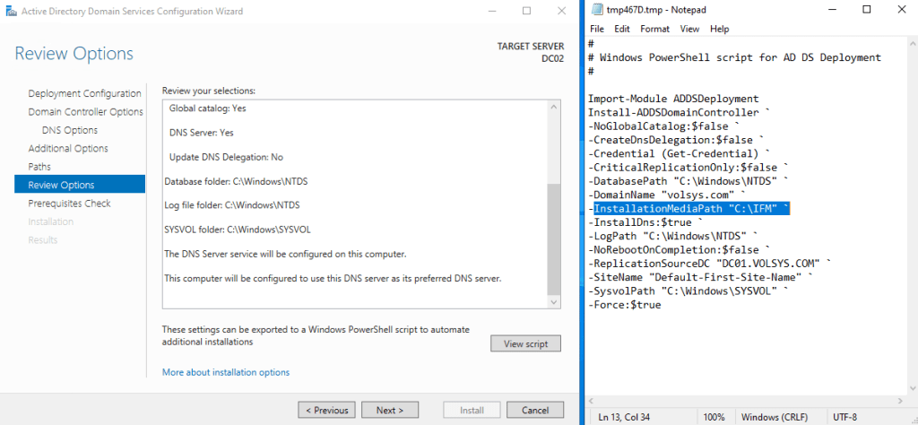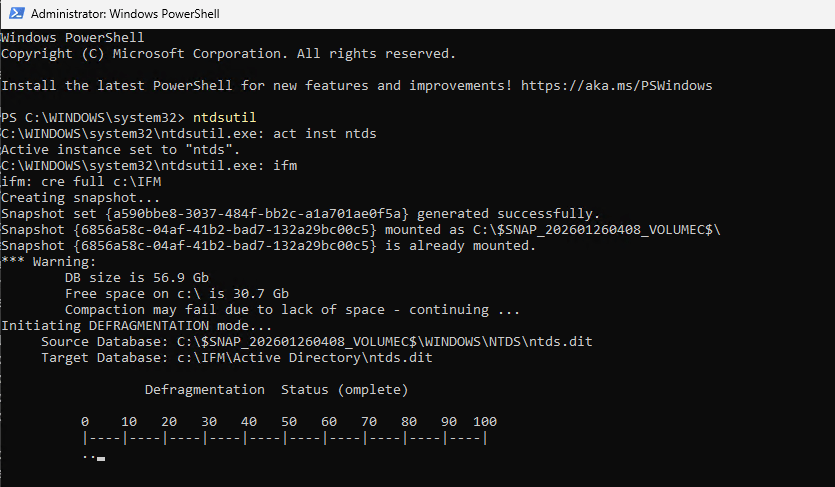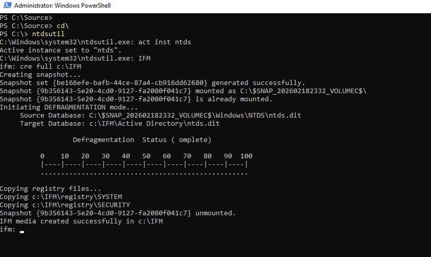 IFM klasörü, NTDS.dit , domain hash bilgileri , güvenli saklanmalı ve iş bitince silinmelidir.