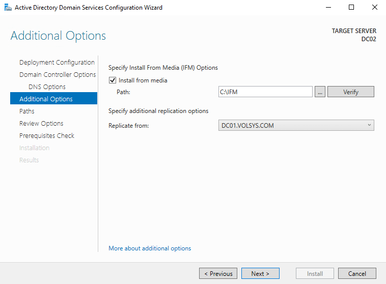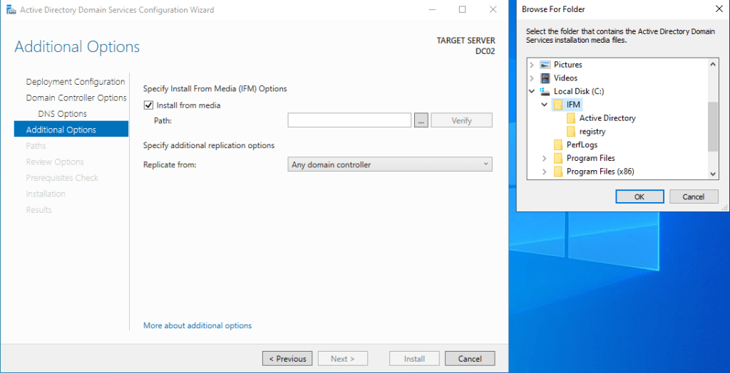 IFM (Install From Media) oluşturma, yeni bir Domain Controller’ı kurarken NTDS.DIT + SYSVOL içeriğini medya üzerinden “ön yükleyip” WAN replikasyon yükünü ciddi azaltmak için kullanılır. Özellikle multi-site ortamlarda çok işe yarar.